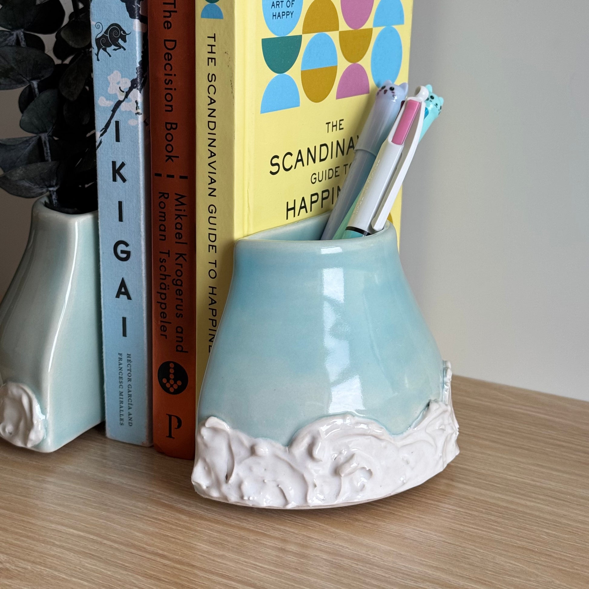 Add a touch of serenity and charm to your space with our handmade Dreamy Cloud Ceramic Bookend Vases! Inspired by the soft, dreamy beauty of clouds, this unique ceramic piece functions as both a bookend and vase—perfect for holding your favorite books while displaying fresh or dried flowers. Designed for book lovers, decor enthusiasts, and anyone who appreciates whimsical yet functional art, this one-of-a-kind bookend vase brings a light and airy aesthetic to any room.